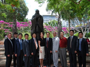 據澳洲《星島日報》報道,澳大利亞昆士蘭州首座孔子銅像揭幕儀式近日在布里斯班市南岸公園隆重舉行,昆州州長布萊、中國駐布里斯班總領事任共平、山東濟南市常務副市長王良,以及昆州政府部分官員、當地華僑華人和留學生代表等200余人出席。 任共平在致辭時表示,2009年是昆省建省150周年,也是中國建國60周年,同時恰逢孔子誕辰2560年。在此特殊時刻,孔子銅像揭幕具有重要意義。孔子是中國古代著名的教育家,他所宣導的“仁”、“和諧”等核心思想已為各國人民廣泛接受。繼承和發揚中國古代思想家的優秀理念同樣有助于社會進步。他指出,近年來,中昆關系發展迅速,全方位合作不斷加深。在南岸公園這樣一個文化中心樹立一座孔子銅像,既是中昆友誼的象征,也將增進昆省社會的多元文化色彩,標志著中國古老文明文化對昆省多元文化社會的重要貢獻。 王良對昆省建省150周年表示祝賀。他說,山東是孔子的故鄉,濟南市是山東的省會。孔子是中國古代偉大的思想家、哲學家,儒家學派的創始人。孔子的學說對中國社會產生了深遠影響,其仁愛、誠信、尚禮的思想及“德不孤,必有鄰”、“己所不欲,勿施于人”、“溫故知新”、“三人行,必有我師”等名言深入人心。孔子是一位超越時代、超越國界的文化名人,希望此次贈送給昆省政府的這座孔子銅像能成為文化使者,增進兩地人民間友誼。王良還詳細介紹了濟南市的基本情況,并誠摯邀請布萊省長和昆省人民到濟南做客。 昆州州長布萊表示,2009年能夠在昆省這塊年輕的土地上樹立一座具有豐富歷史文化內涵的孔子銅像,昆省人民感到非常榮幸。昆省華人社區歷史悠久,華裔為昆省的發展建設做出了巨大貢獻。孔子銅像的揭幕,是對中國文化和華人社區的認可,愿中昆人民友誼長存。 此次孔子銅像由濟南市人民政府捐贈給昆省政府,作為昆省建省150周年禮物。銅像高約2.7米,重約1噸,是昆省首座孔子銅像。