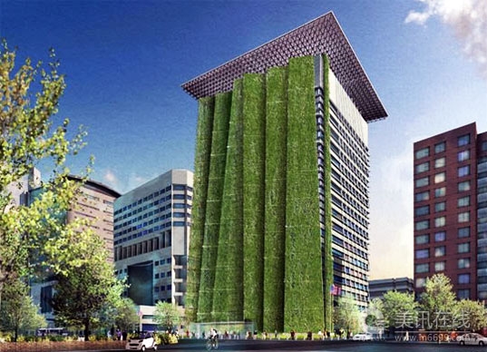 垂直花園并不是什么新鮮事了,之前PNC Bank就宣布北美最大的植物生態墻壁于09年9月份完工。但是俄勒岡州波特蘭的這個垂直花園有它的獨一無二的地方,懷亞特聯邦政府大樓的西面將搭建250英尺高的格架,用做垂直花園用,這個由SERA Architects公司設計的項目將耗資1.35億美元。 它和一般垂直花園所不同的是,懷亞特聯邦政府大樓將由7個名為“植物鰭區”構成,“植物鰭區”從原有建筑內伸展出來,是植物生長的“花盆”。在150英尺長的大樓西墻上建造花園有很多優點:能為大樓遮蔭納涼、為樓下人群提供賞心悅目的景色、即便在冬天陽光也能透過光禿禿的枝干照入大樓里。不過也有很多問題需要解決,包括如何在200英尺高的空中澆水、除草、施肥等。 垂直花園不是高樓建筑唯一的新興特征,其它諸如太陽能電池陣、智能照明系統和發電電梯也都是。