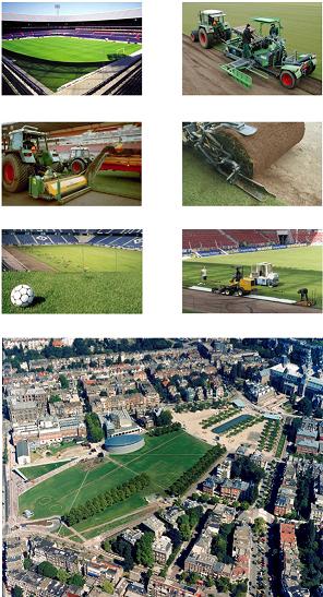 圖7 在世博公園耐踐踏草坪設計中主要通過三個標準加以衡量:混合草種、基地和草坪維護管理。草種混播:綜合考慮上海的氣候(氣溫從冬季的-8°C到夏季高濕度的35°C),病蟲害的風險以及草坪的再生能力,將混合草坪的成分定為狗牙根和高羊毛。基地:具有較高的滲透性和良好的排水系統,至少有三米的厚度,包括一層M3C砂層,厚度25-30cm;一層有機物填充的運動技術層(主草層),厚度15cm;附加的材料可以加強穩定性,最后在頂層種植草皮。維護管理:草坪的噴淋系統能定時進行灌溉,比如POP-UP系統。它能跨越草坪上的任何障礙物,而不需要借助拖拽水管等措施來實現灌溉,同時用規律的施肥來保持耐踐踏草坪的營養。(如圖8、9)