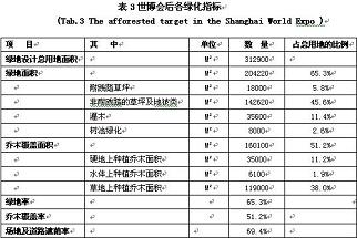 圖9 3.4世博會間、會后的轉換 為了兼顧世博會期間高容量、高強度的綠地使用功能和會后的城市公園功能,世博公園綠地率制定會間、會后兩種設計指標:會間綠地率達到50%,會后將轉變為65%。同時為了滿足世博公園植物展示造景功能,創造生態的植物群落景觀,喬木、灌木、地被的比例也由世博會期間的5:1.5:3.5轉變為世博會后的5:2.5:4.5。具體數量變化見表2、3: