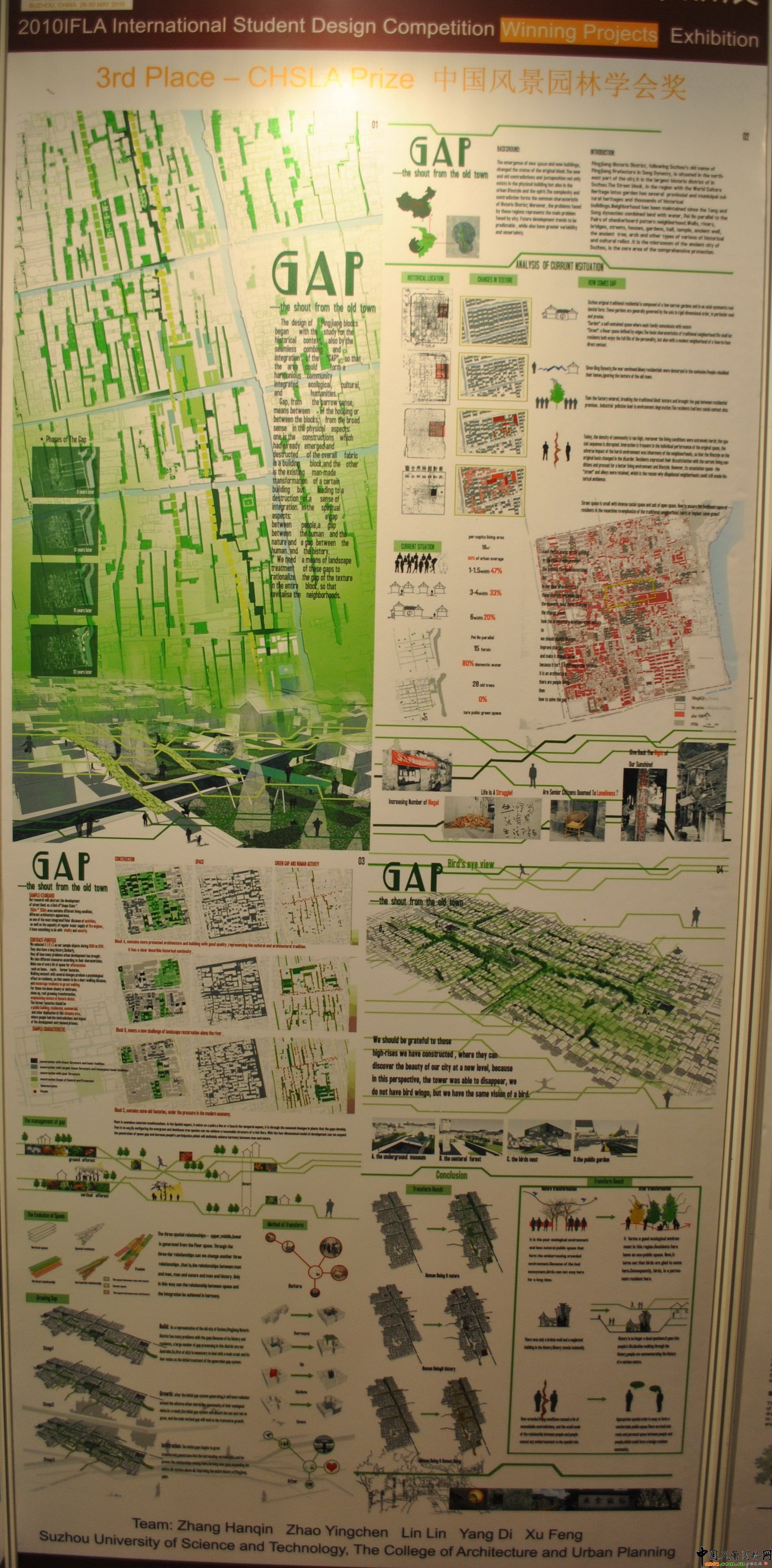 中風景園林網訊 在國際風景園林師聯合會(IFLA)第47屆世界大會大學生設計競賽中,中國學生包攬競賽的一、二、三等獎,以及11個評委會獎(點擊查看詳情),充分展示了中國出現了前所未有的蓬勃局面。 一等獎 大漢風景園林獎:中國北京林業(yè)大學 白樺琳 楊憶妍 郝君 王樂君 王南希 二等獎 IFLA 米勒獎:中國北京林業(yè)大學 沈潔 王思元 洪泉 趙潔 李洋 三等獎 中國風景園林學會獎:中國蘇州科技學院 張涵琴 趙英晨 林琳 楊迪 徐峰