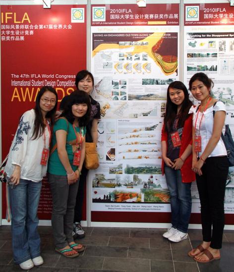 編者按:2010年5月28-30日,國際風景園林師聯盟第47次世界大會在中國蘇州召開,本次競賽主題與大會的主題一致,為“和諧共榮——傳統的繼承與可持續發展(Responding to Nature to achieve Harmony and Prosperity – Traditional Inheritance and Sustainable Development)”。本次大會是參加人數最多的一屆,也是有史以來大學生競賽參賽作品最多的一屆,共收到12個國家和地區的327份大學生設計競賽作品,從中評選出IFLA大漢獎1名、IFLA茲維·米勒獎1名、中國風景園林學會獎1名、評委獎15名。在此次競賽中,中國學生包攬了競賽的一、二、三等獎,以及11個評委會獎,我們向所有獲獎同學和其他參賽同學表示祝賀!同時我們邀請了榮獲一等獎的同學和我們一起談談他們的感受,感謝獲獎同學分享他們的經歷和喜悅,也希望借此機會為大家創造一個交流和相互學習的平臺。 小組成員: 白樺琳、楊憶妍:北京林業大學園林學院城市規劃與設計08級碩士研究生 郝君、王樂君、王南希:北京林業大學園林學院城市規劃與設計09級碩士研究生 導師:李雄 教授,北京林業大學園林學院院長 文:楊憶妍、白樺琳