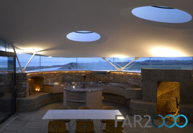 將英國鮑德西(Bawdsey)一座建于1808年的拿破侖時期碉堡改造成一座現代化的私人住所,這的確是一個挑戰。碉堡在過去的一個世紀里越來越破敗,不過它所處的地點卻充滿了自然的美景。 3米厚的拱頂石墻下唯一的入口是二層,底層是沒有窗戶的,主要的目的是清晰地區別新舊部分,避免模仿,現代化的要素也盡可能少地插入到原有的脈絡中。粗糙的石質外觀顯得格外醒目。 彎曲的屋頂是在場地外預先制作的,僅用5個鋼架和三維的無框玻璃來支撐,很清晰地分隔開新舊兩部分,從那里能夠360度地觀賞到海岸的景色。Piercy Conner事務所和Billings Jackson設計公司將其轉化成住所之后,碉堡的歷史性被保留了下來,為再生和再利用舊建筑提供了更多的可能性和借鑒。 ![]()