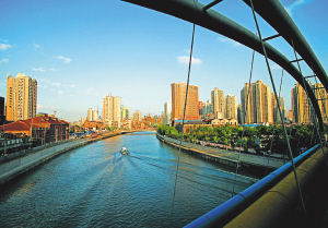 蘇河彎彎入浦江,無限風光閘北岸 如今,提升蘇河灣價值的條件已經基本成熟,閘北將以創新之策、非常之舉快速推進,大力加強東片區的城市再造和西片區的功能修復,努力打造一個核心CBD的拓展區域、金融中心的助力支點、國際都會的人才中樞、蘇河文化的魅力舞臺,力爭“一年一個樣,五年基本建成”。重點是“實施三個戰略”。 實施地標引擎戰略 孕育三顆“希望種子” 除了目前已啟動的蘇河灣1號和大悅城項目作為引擎項目外,未來將在蘇河灣地區孕育三顆“希望種子”:一是曲阜路、文安路東北角的悅廣場,將周邊高密度商業辦公項目整合成一體,通過由濱河地帶引出的開放空間走廊向北向東延伸,推動北側及東北側地塊開發;二是晉元路、曲阜路西南角的商務公園,形成商務集聚區,同時擁有濱水及公園的雙重景觀優勢;三是共和新路、北蘇州河路東北角的蘇河門戶公園,采用緊密結合的獨特建筑形態和大地景觀,塑造出標志性的門戶形象。這三顆“希望種子”將憑借其自身的標志性、公共性,帶動整個蘇河灣地區開發。 實施低碳環保戰略 打造兩條“生態橫軸” 在蘇河灣未來開發中,將打造蘇州河生態走廊和曲阜路林蔭大道兩條“生態橫軸”,橫向貫通整個蘇河灣地區。其中,蘇州河生態走廊將修建游艇碼頭,打造沿河休閑景觀平臺;曲阜路林蔭大道將串聯起浙北綠地、悅廣場、晉元商務公園等多個公園廣場,使未來的蘇河灣在成熟的城市化地區中仍然保留青青綠樹、悠悠碧水的生態環境。 實施歷史人文戰略 引入一道“時光縱軸” 歷史文化元素是蘇河灣又一卓越的先天稟賦。在西藏北路、浙江北路之間區域,將塑造一條串聯起蘇河灣過去、現在和未來的時光軸線。在未來的蘇河灣,這條絢爛的“時光縱軸”將成為支撐起蘇河灣開發的動力,讓見證光榮的四行倉庫、商賈云集的上海總商會、百年滄桑的石庫門建筑、巍然矗立的高樓大廈等和諧共生,提升蘇河灣地區的整體價值。