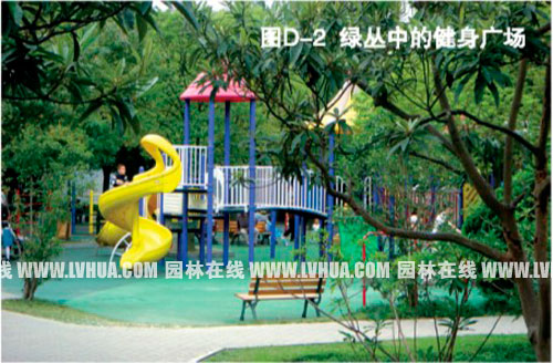 一、健身廣場的形成 社會的快速發展,健身的內容已逐步深入人心。加上老年化社會的形成.康健小區達標的要求,健身在新舊居住區、公園、學校、街道綠地甚至可利用的邊角地塊等地方,普遍成為一項老百姓喜聞樂見.老少咸宜的重要生活內容。因而產生了“健身廣場”這樣一種新型的項目和新的概念。但是在居住區環境景觀設中,對此認識不足,有的僅在規劃中表示地位,有的甚至忽略其存在,留造待物業或居委找生產商見縫插針自行建,很少有對“健身廣場”進行詳細選型排列布置的。本文意在引起對這方面的關心注意。(圖A) 二、健身廣場的類型 (一)健身類具材 市售各種成型的具材,多數為鋼木材制品,價廉物美,如太空漫步、腹背牽引器等,也包含健身道路—一現在是健身廣場的主要內容。 (圖B-l) (二)運動類具材 各種小型的常規定型具材,如單杠雙杠,吊環、羽毛球乒乓球場等,主要服務對象為中青年,在有較大場地的公園綠地可以見到這種布置。 (圖B-2) (三)玩具類具材 各種成組的小型多樣具材,也包含沙坑等設施。主耍服務對象為青少年,多數公園可以見到這種設施。 (圖B-3) (四)這三項內容從活動的“動靜”上是一致的,但服務對象是不同的,有時單獨設立,有時結合在一起布置。 (圖B-4) 三、健身廣場的選地 (一)居住區內的健身廣場經常布置在集中綠地、幢間綠地上,與住戶有適當距離,避免對居民的影響。一般每個居住區有多于一個健身廣場,用于安放健身類或玩具類具材。 (圖C-l) (二)公園內的健身廣場 往往選擇在靠近入口處,形成獨立的空間,有時健身具材是有很大規模,有時玩具具材擴展為娛樂運動,如攀巖等。(圖C-2) (三)街道綠地的健身廣場 應考慮地形,充分利用每個邊角布置,不影響其他活動,多數為小型多樣的健身類具材。 (圖C-3) 四、健身廣場的規劃 (一)各類具材選型妥當、間距合理,有規律地排列,互不影響使用。 (圖D-1) (二)有良好的活動環境,最好大部分具材處在樹蔭之下。 (圖D-2) (三)有防滑.排水的舒適鋪裝,各項附屬設施都符合安全要求。 (圖D-3) (四)除了健身活動,最好還有休息閑談的場所、座椅.照明。 (圖D-4) (五)一般具材設有使用說明銘牌,規模較大的完整揚地設管理房。 (圖D-5) 五、常用健身具材的尺寸和安全距離 (一)健身步道(圖E-l) ●單向活動的健身步道寬1.2 - 0.9米,平面必須圈狀閉合;考慮活動人多時的雙向健身步道寬1.5 - 1.2米。 ●健身步道具足底按摩的作用,卵石最好直立粘貼但大小相當表面平整。 ●卵石道邊緣最好有明顯觸感,以適盲人或閉眼活動。 ●所選卵石可作彩色拼花圖案,常用斷面為素砼80-100毫米下碎石夯實。 常用健身具材 太空漫步等二十項。 健身具材的安全間距 ●常用健身具材尺寸各廠生產略有不同,以實際尺寸為準。 ●在使用人上下的方向建議至少留0.5米距離,因此健身具材之間至少距為1米,一方面是考慮安全,一方面是考慮穿行,再留有適當的余地。 ●在使用人活動的方向建議至少留0.9 -1.8米距離。按我國人體平均雙手左右平攤長為1.7米,單手向前長為0.85米這個距離應是足夠的。 ●在使用人不活動的方向建議至少留0.3 - 0.5米距離。有的健身具材活動時向前或后外伸,應以最大范圍尺寸為準。
