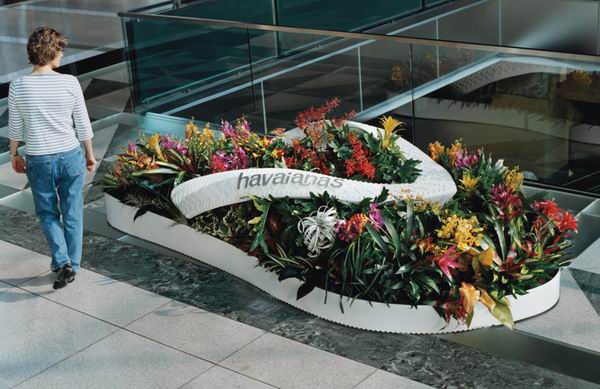 漂亮的花床顯示出havaianas獨特的審美色彩,設計和品牌鏈接的性質。