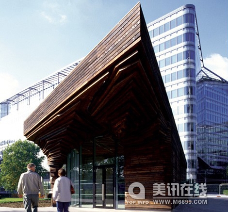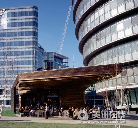 如果高樓大廈讓你覺得壓抑,但你仍然無法抗拒步行在泰晤士河邊享受一個陽光燦爛的一天,那么來看下這樣的建筑吧。 休息亭在人類活動中不僅是舒適的場地更是一個理想的咖啡休閑場所,可是在其中“the darker”是一個在英國的首次使用被燒焦木材包層的小型建筑,這種技術類似日本的Yakisugi。DSDHA’s Deborah Saunt說:“這幾乎就像一個石窟。” 另外一個就是用鈣化變白的木材建造的,具有屋頂綠化,并提供了觀看倫敦最好的視野的場地。即使他們似乎很不起眼,卻非常受歡迎。這些休息亭,實際上比看上去要大,其中兩個“隱藏”地,兩個地下通風豎井和一個擦窗機的停車場。 同樣的,在同一個大空間下設計有一個獨特的休息亭,可以抵消周圍標志性建筑及其獨特的形狀。