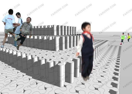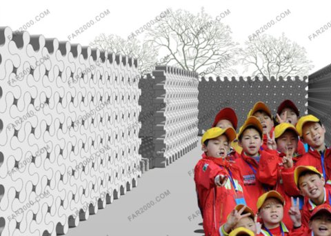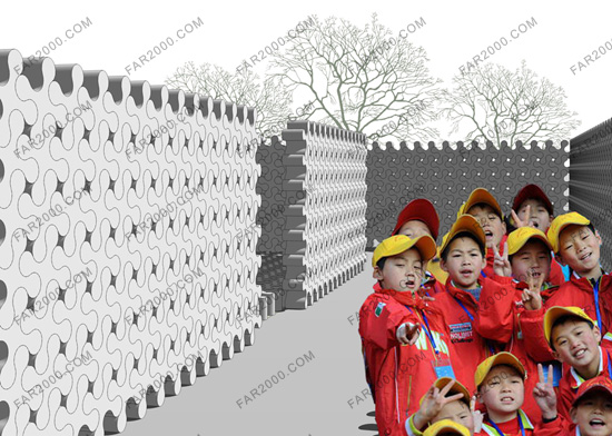 ![]() multi-functional ![]() 健身 ![]() 臨時(shí)建筑 ![]() 游戲 “瓶磚”是為四川災(zāi)區(qū)什邡市湔氐鎮(zhèn)龍居小學(xué)所作的設(shè)計(jì)。該項(xiàng)目是受中國(guó)扶貧基金會(huì)的委托為龍居小學(xué)的地震及重建所作的紀(jì)念物設(shè)計(jì)。由于該小學(xué)在512地震災(zāi)難中人員和建筑都受到重大損失,因而,小學(xué)的重建受到社會(huì)的廣泛關(guān)注。先后有大陸港臺(tái)海外的眾多演藝明星捐資重建。受到這些義舉還有當(dāng)?shù)卣头鲐毣饡?huì)等默默工作付出的人們的激勵(lì),車(chē)飛及超城建筑/北京超城建筑設(shè)計(jì)有限公司在參與民樂(lè)村重建設(shè)計(jì)之后,再次義務(wù)承擔(dān)此次龍居小學(xué)地震及重建所作的紀(jì)念物設(shè)計(jì)。由于這個(gè)項(xiàng)目是小學(xué)校的重建設(shè)計(jì),因此如何將來(lái)自社會(huì)的愛(ài)心能夠直接的轉(zhuǎn)達(dá)給每一個(gè)在此重新開(kāi)始學(xué)習(xí)的孩子是此次設(shè)計(jì)的出發(fā)點(diǎn)。盡管從項(xiàng)目的性質(zhì)上是一個(gè)紀(jì)念性的建筑,但是如何在災(zāi)難紀(jì)念與重建生活之間保持平衡,既不能將災(zāi)難轉(zhuǎn)變?yōu)橐粋(gè)孩子們揮之不去的陰影,也不能使人將災(zāi)難面前人類的脆弱與堅(jiān)強(qiáng)拋之腦后,這成為此次設(shè)計(jì)的重點(diǎn)。因此,這個(gè)地點(diǎn)應(yīng)該是愉快歡樂(lè)而又能受到教育的地方。它所提供的歡樂(lè)使孩子們能夠重建他們歡樂(lè)的童年,健康成長(zhǎng)。而它所提供的教育在于我們?cè)谶@次災(zāi)難中得到的最寶貴的經(jīng)驗(yàn)--在災(zāi)難面前的全社會(huì)的眾志成城。災(zāi)難留給我們的不應(yīng)只是陰影和痛苦還有重要的經(jīng)驗(yàn)和收獲。 在經(jīng)過(guò)試驗(yàn)和分析之后,一個(gè)看起來(lái)十分簡(jiǎn)單而又十分有效的概念成為我們的設(shè)計(jì)方案: “瓶磚”。這個(gè)設(shè)計(jì)源于車(chē)飛近年的一個(gè)研究項(xiàng)目:“可批量生產(chǎn)的多樣性設(shè)計(jì)”。這種設(shè)計(jì)試圖使用有限的構(gòu)建或預(yù)制材料構(gòu)造盡可能多的建筑形態(tài)和功能,以此來(lái)提高我國(guó)大規(guī)模建筑生產(chǎn)的適應(yīng)性和持續(xù)性,并在保證質(zhì)量的情況下,降低成本和環(huán)境損耗。從形態(tài)上看, “瓶磚”是一個(gè)40X40厘米寬厚25厘米的4瓣花朵形的體塊。由于尺寸的恰當(dāng)使得“瓶磚”可以相互以多種方式榫桙在一起。像普通的磚一樣,它有許多種搭接的方式,不同的地方, “瓶磚”可以因自身結(jié)構(gòu)使用榫接而不需要粘接劑,這使得這種材料的再利用性大大提高。而不像其他需要粘接的材料在完成后就很難反復(fù)使用了。因此, “瓶磚” 可以反復(fù)組合成不同的形態(tài)以求得不同的使用功能。最大化的提高材料的使用效率。 像積木一樣,如何“瓶磚”的材料質(zhì)量合適,它的施工完全可以由孩子們和老師獨(dú)立完成。因此,我們建議使用保證材料上人強(qiáng)度的空心高強(qiáng)度塑料桶作為“瓶磚”的材料。經(jīng)過(guò)調(diào)研,建議使用壁厚為5毫米的吹塑工藝及精加工的鋼制模機(jī)完成?偣残枰s5500塊。每塊“瓶磚”設(shè)計(jì)有螺栓瓶口和蓋子,使得在需要時(shí)可以向其內(nèi)部注水以增加其質(zhì)量,并可用于飲用水的儲(chǔ)存。 “瓶磚”將主要用于室外小廣場(chǎng)上的使用,戶外使用對(duì)材料的耐磨性也提出要求。