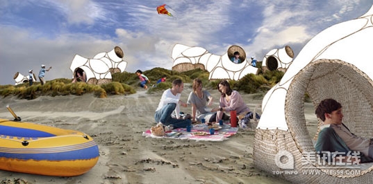 ![]() ![]() ![]() 這種模塊化,能夠移動的Snuggles酒店,讓您與有藝術氣息的露營場地并無差異。該項目跨越在臨時建筑和公共藝術的框架中,有平臺以及防水紡織品。能夠搭建在沙灘、森林或城市環境中, Snuggles提供了一個有趣的經驗是相同的,即使是最時興的旅館。 他們的酒店設計采用了最基本的資源,是完全移動和重構。該吊艙可以建立在棚屋的平臺,這樣就很容易適應環境,而不破壞它。這種垂直的生活配置比其他露營更有可持續,有能力適應更多的游客,它可以在每平方英尺的土地使用。 另一個原因是滿足顧客的利益進行一種公共藝術設計性實驗。在接受采訪時馬庫斯巴德的Raumlabor說:“臨時使用的手段,有一個臨時用戶。也就是說,每個人都有自己的想法,如何利用空間和能夠滿足顧客呢?臨時用戶可以另一種形式來開發。Snuggles就是一個很好的例證這項研究的用戶轉化的設計,因為每個旅客自然會定制自己的房間,給路人欣賞到您的倉鼠隧道變成藝術空間。”