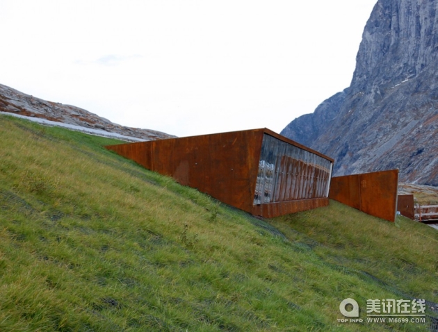 這個項目將增強人們對于Trollstigen 高地地理位置及自然特性的體驗。貼切的建筑特點及材料的使用突出了這里的山地氣勢和地理特點,各種功能設施恰到好處的安裝增強了的景觀的觀賞性。觀景臺在人工景觀和自然景觀中起到了非常好的過渡作用。工程通過動態的水-雪山,流動的水,以及靜態的巖石描繪出了這一地點獨特的空間特性,同時也很好的突出了這一特性。