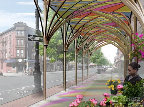 紐約市市長Michael R. Bloomberg、房屋建筑部官員Robert D. LiMandri和美國建筑研究所紐約部主席Anthony Schirripa向大家展示了一個新的人行道遮護建筑設計,這是一個木材和鋼鐵結構的建筑,能讓行人在里面行走。自20世紀50年代起,這個城市的人行道遮護建筑基本上就沒有變過,而現在的這個新建筑設計將會大大提高人們的生活質量,減少建筑對商業的影響,增加行人的安全和人行道可用空間的大小。 urbanSHED國際設計大賽的本意就是讓設計者去創造出一種新的人行道遮護建筑,大賽的獲獎作品“城市傘”是又賓夕法尼亞大學一位28歲的學生Young-Hwan Choi設計。 本次大賽一共吸引了164位設計師參賽,他們是來自全球28個國家的建筑師、工程師、設計師和學生。 Choi先生將獲得1萬美金的比賽獎金,而紐約商業區聯盟將出資在曼哈頓下城區全面建設這種建筑。Choi先生是賓夕法尼亞大學建筑系一年級學生,他在韓國首爾的韓國大學獲得建筑工程學位,于2009年夏天來到美國留學。當他獲得決賽資格的時候,他和專業工程師Sarrah Khan以及紐約設計公司Agencie Group的執業建筑師Andres Cortes組成了團隊,對設計方案進一步的改善。 在初賽時,評委團主要按照安全、可持續性和建筑能力的標準選出了三個作品進入決賽。另外影響作品得分的因素還包括:自然光照的利用、所需電力光照、對街景的影響、行人的感受和建筑結構的改善。進入決賽后,這三位決賽選手都獲得5千美金用于改良設計,同時他們還得到一流設計和建筑企業技術顧問團的建議。 市長Bloomberg說:“昨天,我在城市狀態的演講中談到了那些為我市補充動力的創新和企業,而今天我們就正在贊揚這些企業精神。人行道遮護建筑是紐約生活的一部分,它們反應了城市的不斷發展的面貌,但是在過去四十年內,它們本身卻沒有什么改變。現在是21世紀了,我們要用新的人行道遮護建筑迎接這個世紀。新的結構會體現出城市建筑之美,它能擴大人行道的可用空間,為行人提供更高的安全性,同時還能減少它對商業建筑所帶來的負面影響! 交通部官員Sadik-Khan說:“過去的人行道遮護設施雖然是必需的,但是它不僅隱藏了相鄰建筑的特征,同時也影響了作為商業通道的活力,而這個新的設計則會讓紐約人刮目相看。” 城市規劃部官員Burden說:“設計就是讓我們重新思考那些我們已知的東西。這次大賽不僅讓眾多設計師熱情高漲,同時它還能讓城市重現生機勃勃的街景,這個創新的設計給行人帶來了更多的樂趣” 在紐約市有大約6000個人行道遮護設施,長度累加在一起有一百萬英尺,房屋建筑部門將會把新設計作為人行道遮護建筑的新標準。人行道遮護建筑在城市里隨處可見,而“城市傘”則很好地將它進行了升級,它有以下優點: ·改善地區生活質量,其中包括美感、空氣流通、照入光線; ·減少建筑對建筑擁有者和商業所帶來的負面影響,它對人們視野所帶來的阻礙更小,這樣人們能看到更多街邊建筑; ·提高安全性; ·減少人行道障礙物的數量,增加人行道的可用空間。