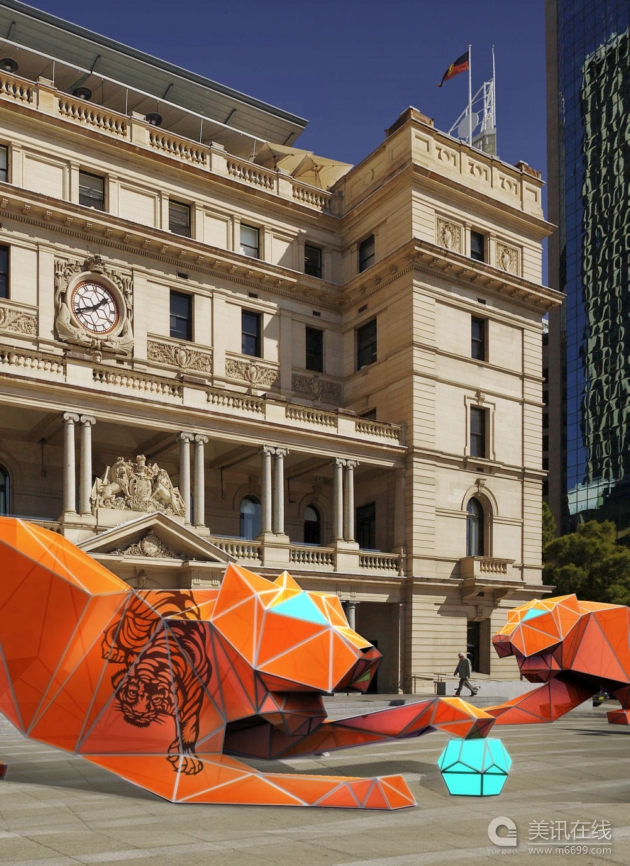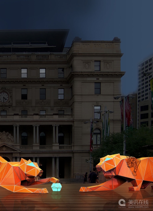 Lava公司在悉尼海關大樓門前設計了兩只大“老虎”,以此慶祝中國傳統新年。這兩只“老虎”將從2月11日一直陳列到3月14日,在慶祝中國虎年的同時,讓人們意識到老虎已經成為了瀕危動物。