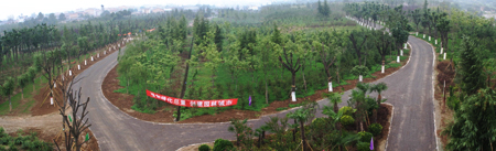 千畝綠林景觀區。70余個品種8萬余株喬、灌木和類以及3200平方米色帶,分布在百果林景區、層林盡染區、聞木樨香區、春華秋實區、舒潭印月區、百花園區、休閑運動區、入口景觀區等8個景觀節點,依坡游走,遇水成趣,逢溝而落,形成了植物配置錯落有致、季相變化色調分明、葉類植物旋轉變幻的獨特景觀,猶如天籟之作,賞心悅目。深入其間,樹成群、花成片、成坪、林成陰,一種天然野趣、古樸自然的清新,讓人如沐林海天趣。