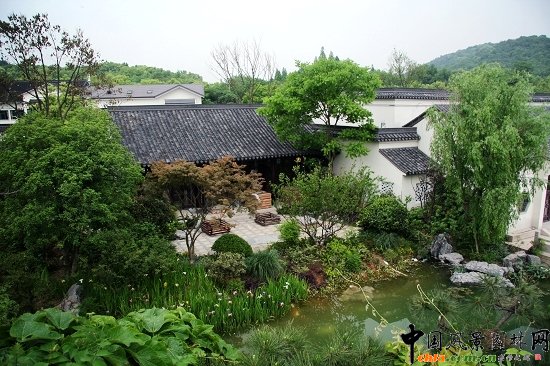 由東至西的順序,首先進入視野的是第一個景觀區:大湖面的景觀區以及面積約為2000平方米的湖面為中心,圍繞這個中心設置有餐廳、會議廳、走廊等相關室內功能區域的配套景觀庭院及保留的假山景區,其中都有相應的景觀點,為觀賞中心景觀提供了充分的開放空間和私密空間,景隨步移,一步一景,一景一色。造景結合著純中式的外建筑風格和先進的現代式室內裝修風格,完美地透射出現代化的中式園林獨有的風格。