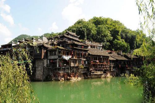 湘西鳳凰古城沱江邊排列的特色民居—吊腳樓  龍弘濤 攝