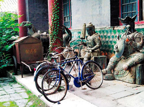 孚王府的文物雕塑置于露天之中